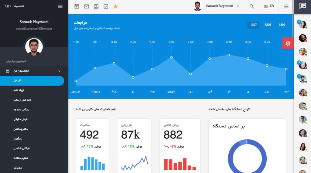 در نسخه سوم با استفاده از قالب FUSE Admin کلیه منوهای FrontEnd از HTML به Angular تغییر یافت
